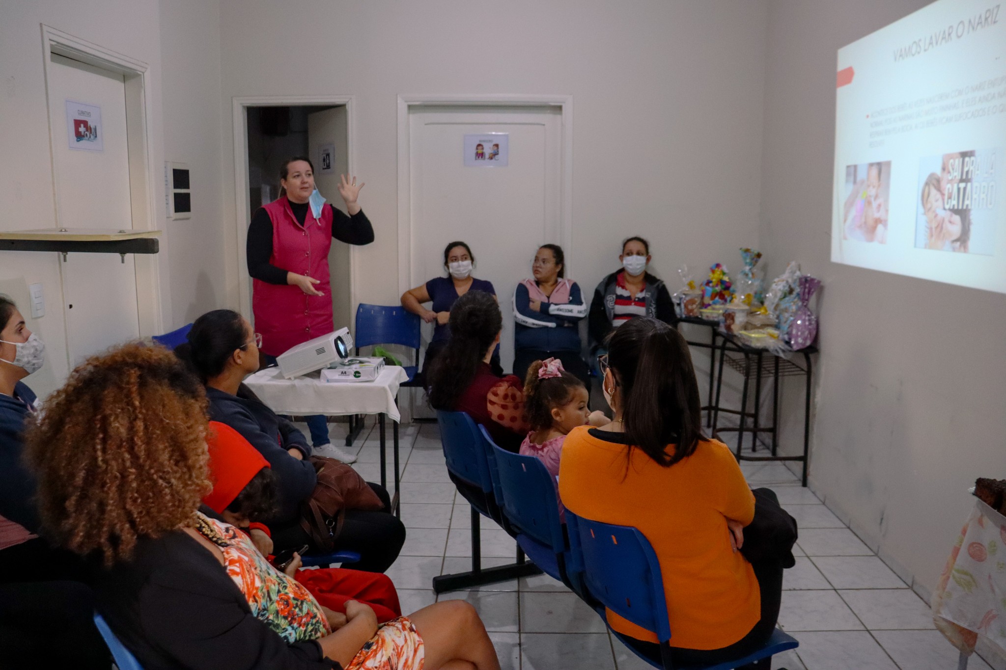 O encontro, contou com uma palestra sobre cuidados com récem-nascidos, ministrada pelas enfermeiras Jessika Castro e Daniele Mafra.