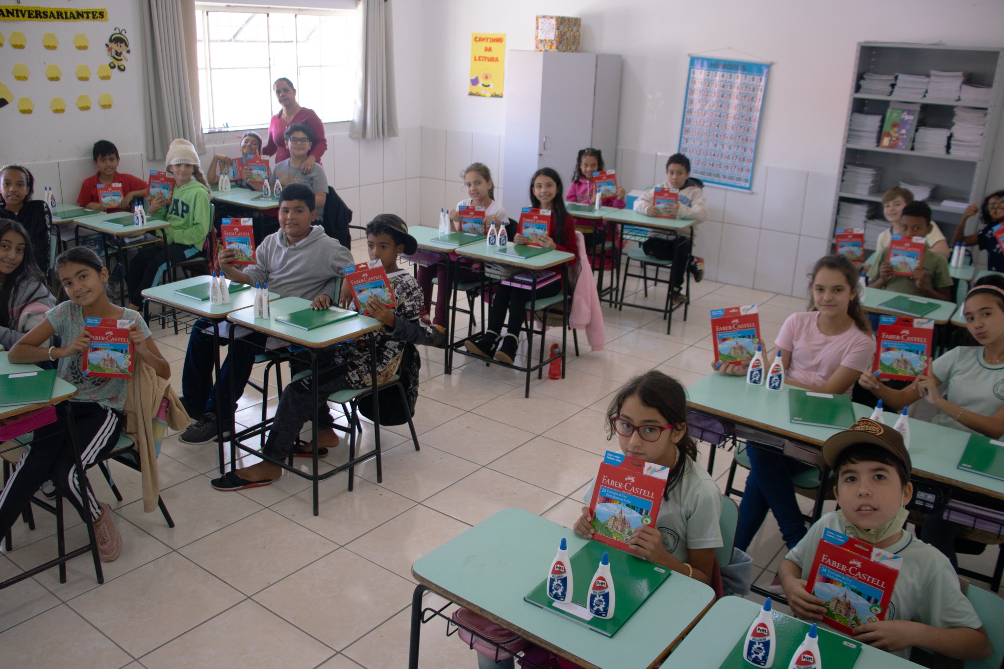 Hoje foi dia dos alunos da escola Adelaide receberam a reposição dos seus kits escolares em sala de aula.