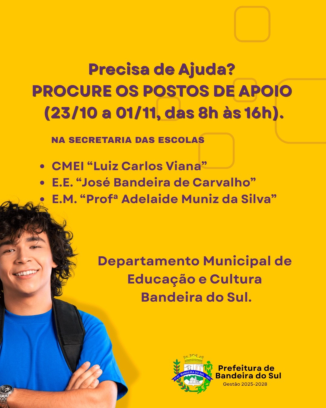 O Departamento Municipal de Educação e Cultura de Bandeira do Sul informa que o período de Cadastramento Escolar 2026 já começou!