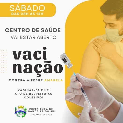 Neste sábado, o Posto de Saúde estará aberto para a vacinação contra a Febre Amarela!