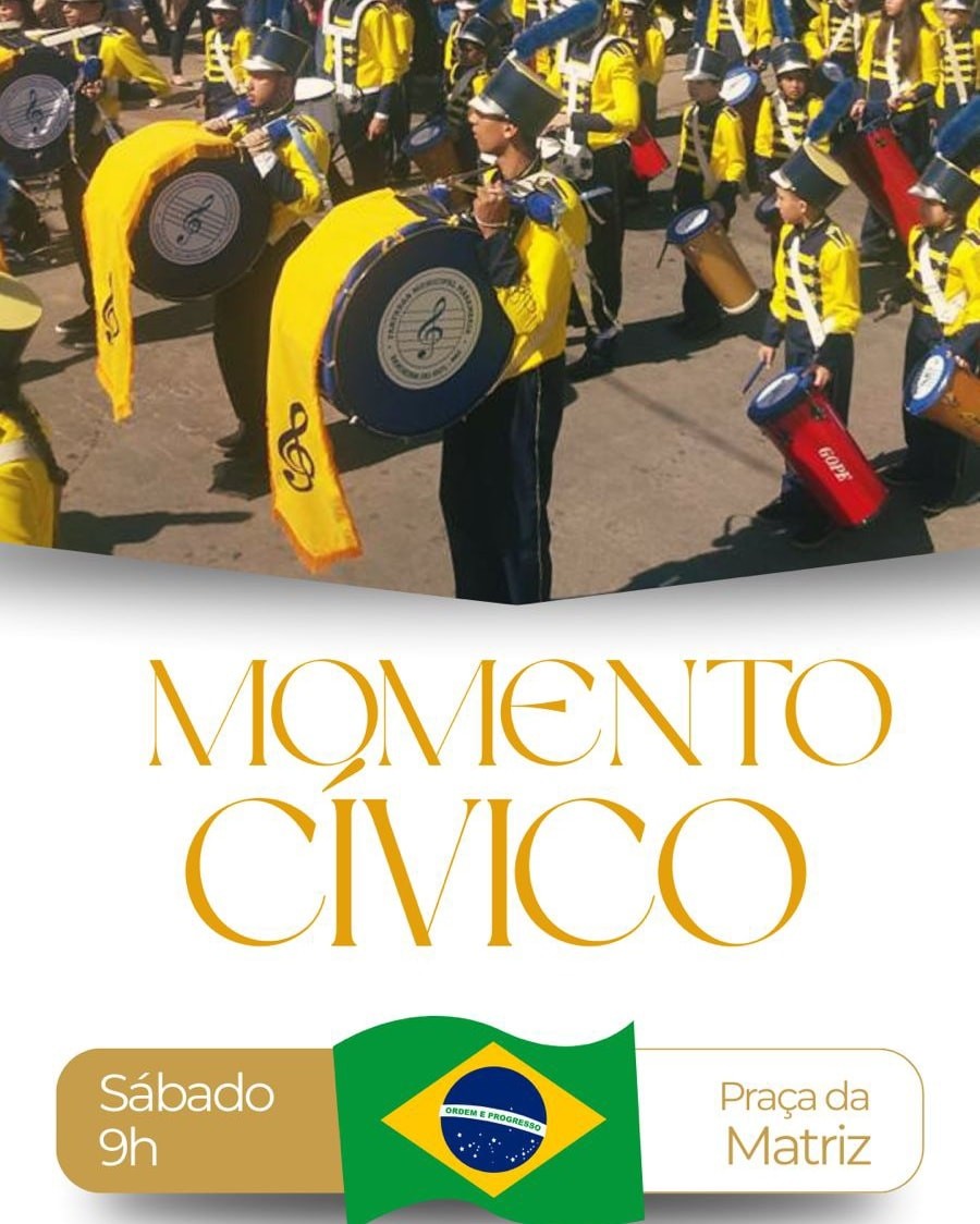 Convidamos toda a população para prestigiar o nosso Momento Cívico, uma celebração especial de amor à Pátria e valorização das tradições.