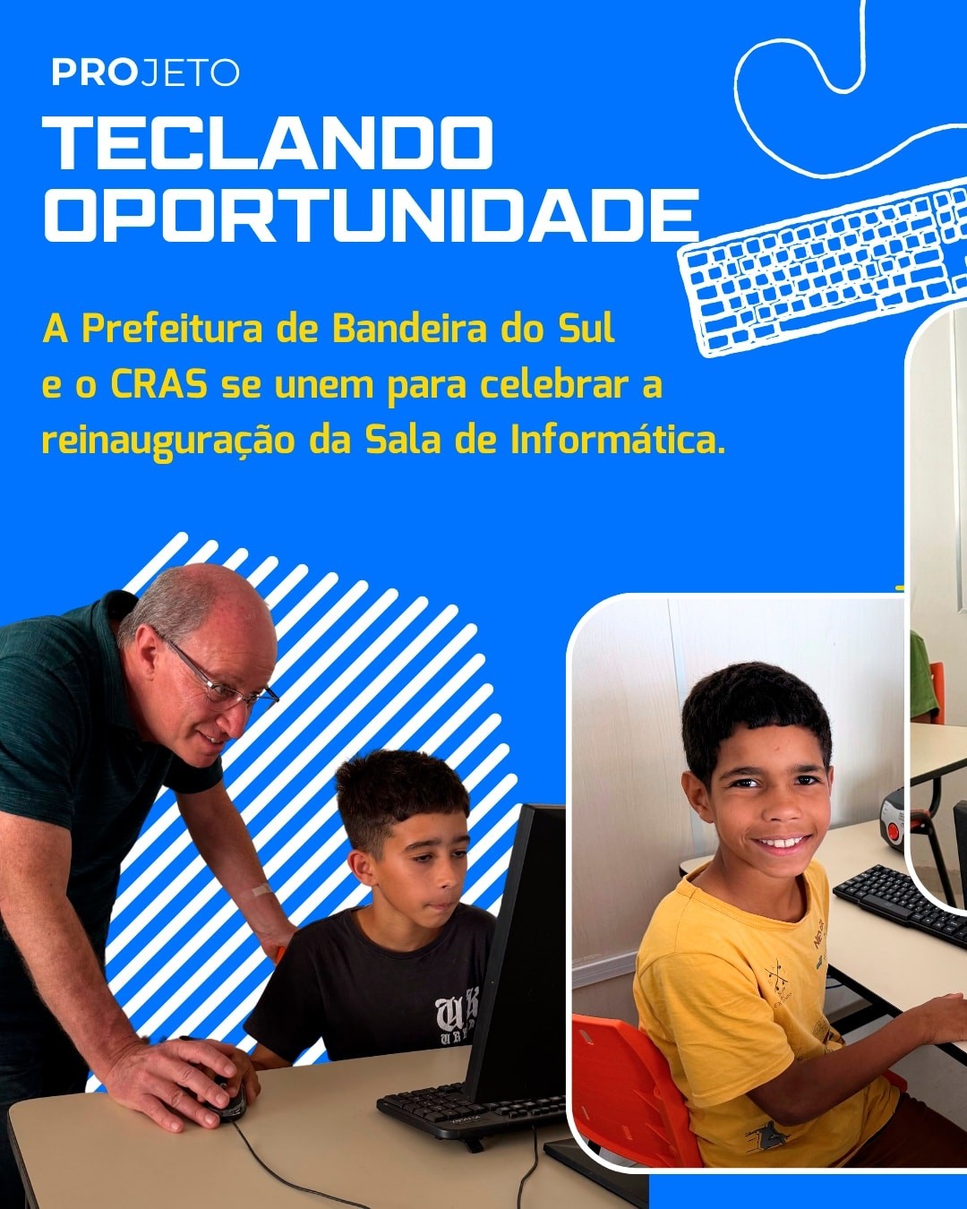 Um desses projetos se intitula "Teclando Oportunidades", nele, são ofertados cursos para iniciantes e módulo básico.