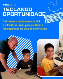 A Prefeitura de Bandeira do Sul e o CRAS se unem para celebrar a reinauguração da Sala de informática.