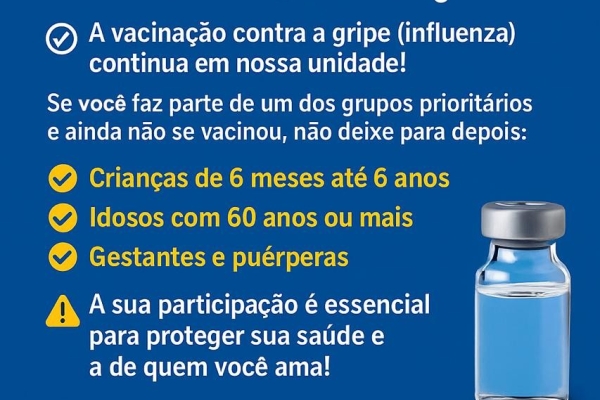 ATENÇÃO! VACINA CONTRA A INFLUENZA (GRIPE)