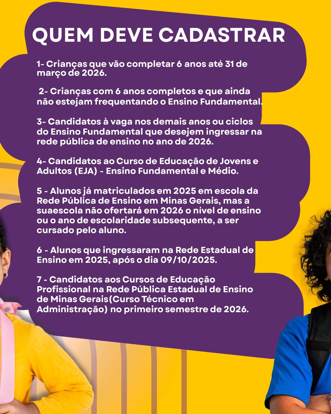 -Crianças com 6 anos completos que ainda não frequentam o Ensino Fundamental.