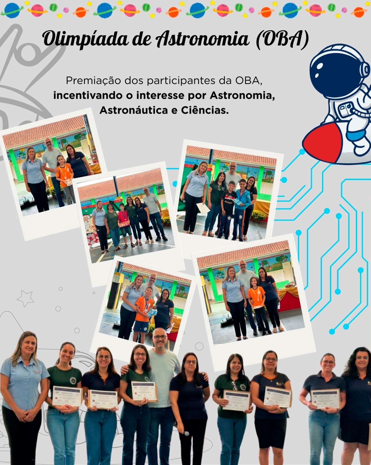 • Olimpíada Brasileira de Astronomia e Astronáutica (OBA), visando estimular o interesse das crianças pela Astronomia, Astronáutica e áreas afins das Ciências.