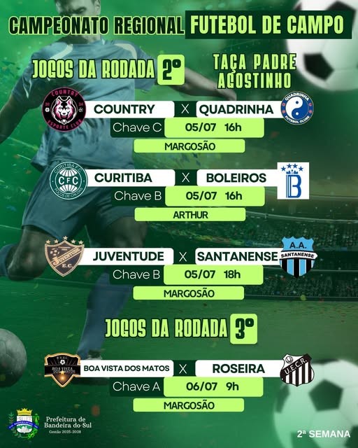 Jogos da 2ª Rodada – 05/07 (sexta-feira): COUNTRY x QUADRINHA