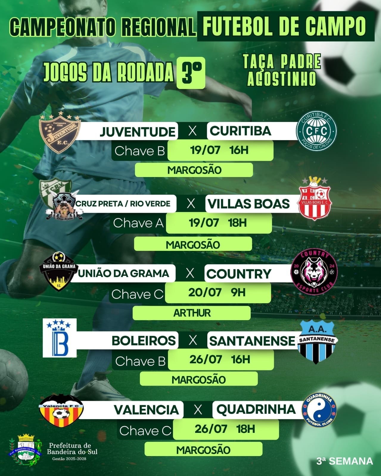 A bola vai rolar com força total na 3ª rodada do nosso Campeonato Regional de Futebol de Campo!
